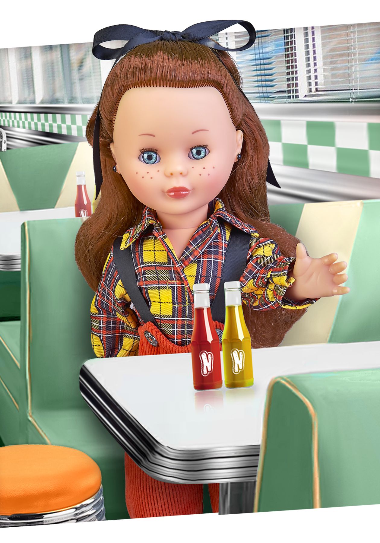 Esta reedición de Nancy y Lucas de 2021 nos devuelve a los años setenta con sus looks únicos e icónicos.Nancy lleva un precioso traje vaquero ancho sobre una camiseta roja y unas medias a rayas, y Lucas tiene un peto rojo con una camiseta de estampado setentero azul. Este set incluye una muñeca Nancy Colección de 42 cm y un muñeco Lucas de 43 cm. Fabricada con el molde original de la muñeca Nancy de los años 70. Incluye un certificado de autenticidad. Serie limitada.
